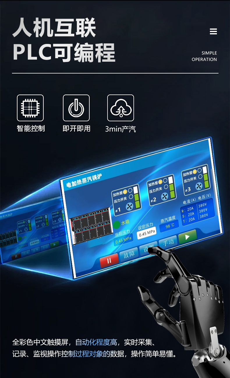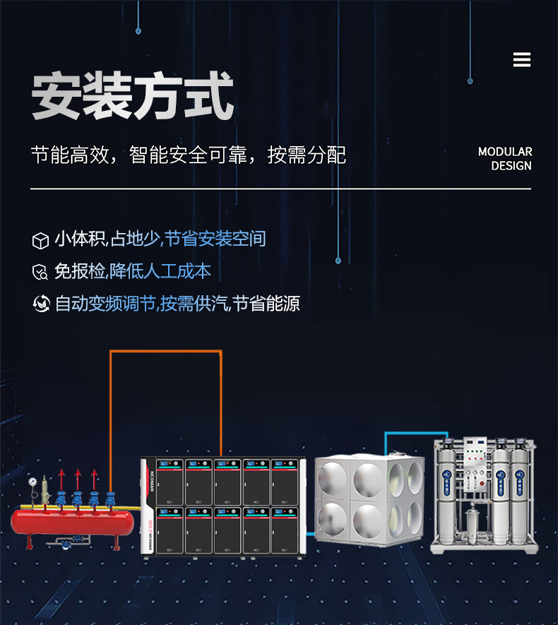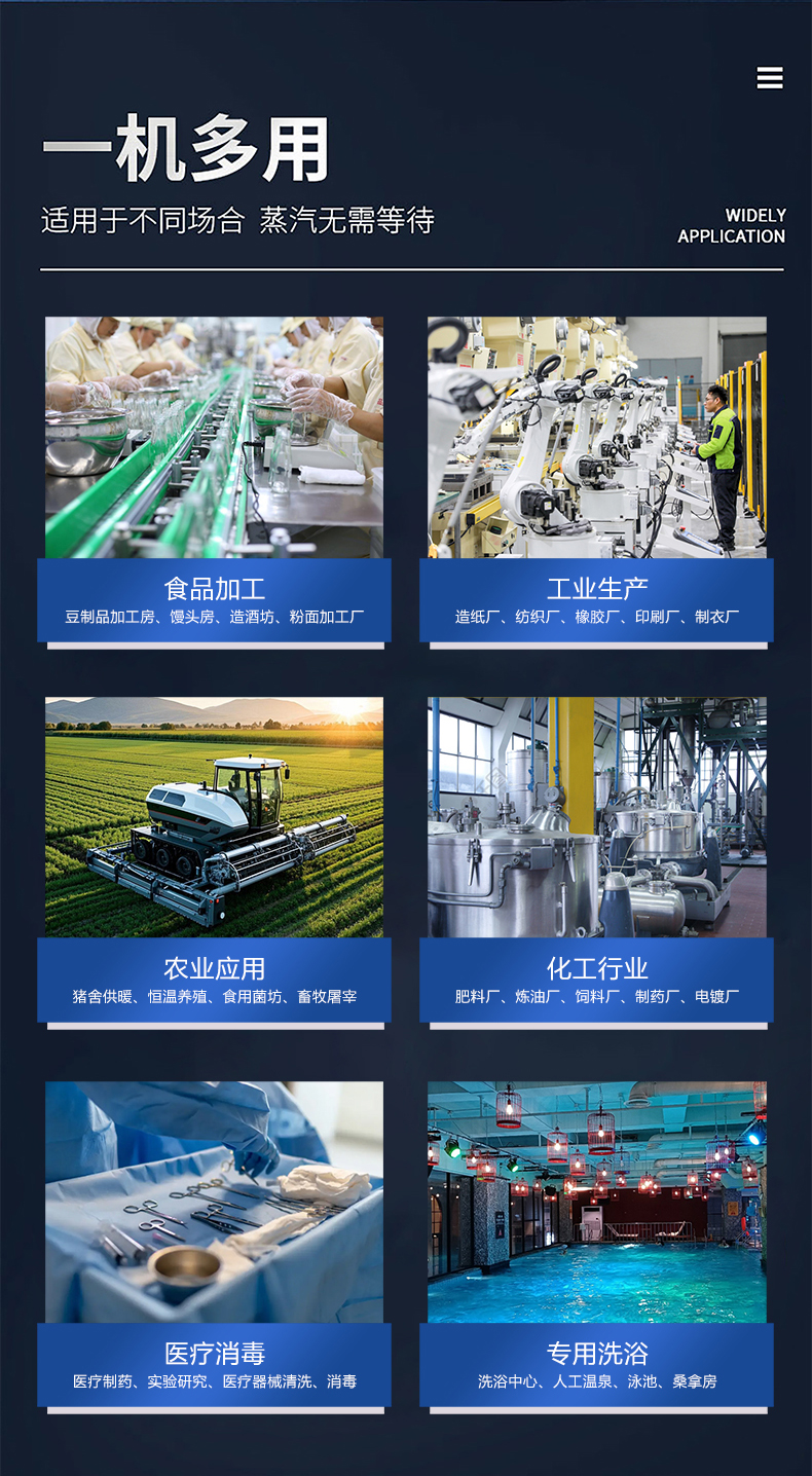 積木式自由組合,按需供氣;蒸汽量:6kg至6T;幾何容積小于30L,無需報檢;獨特汽水分離器蒸汽干度高達99%;溫度、壓力、可定制,更多參數可致電15323300918...